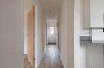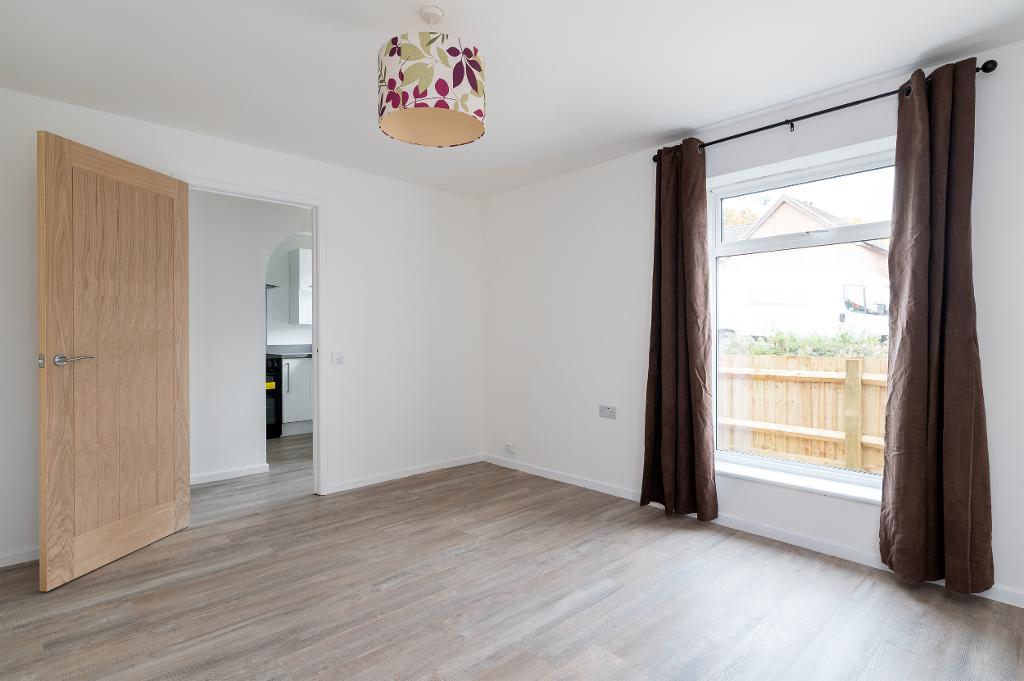 Upon entering the property, the entrance hall provides access to all principal rooms. The bright and spacious living room benefits from a large window that floods the space with natural light, complemented by crisp white décor and elegant LVT flooring.
