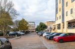 The property benefits from a modern, fully tiled bathroom complete with a shower-over-bath setup and contemporary fittings. Additional features include a spacious storage cupboard and private, gated, allocated parking to the rear of the development.