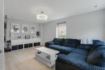 Across the hall, the spacious living room offers a second dual-aspect outlook, creating a bright and airy feel, with generous space for a variety of seating and furnishings; perfect for relaxing or entertaining guests.