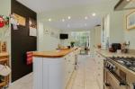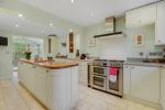 Upon entering, a bright and spacious hallway with convenient cloakroom leads to all ground floor accommodation. The impressive L-shaped kitchen is the heart of the home, featuring a stylish island with breakfast bar, modern shaker-style cabinetry, a mix of wooden and laminate worktops, and a range of integrated appliances. This sociable space flows seamlessly into the conservatory, currently used as a dining area, where you can enjoy beautiful views of the garden throughout the seasons.