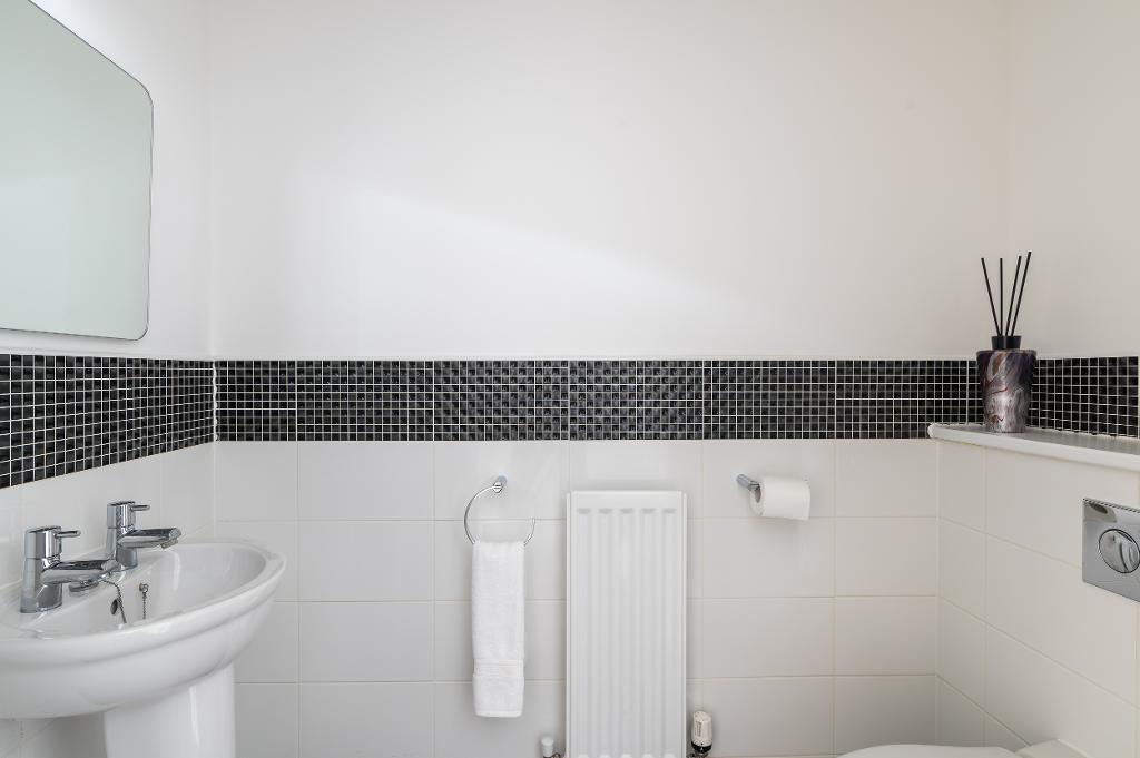 The second floor comprises three further well-proportioned bedrooms, all bright and airy, along with a modern family bathroom featuring a shower-over-bath arrangement.