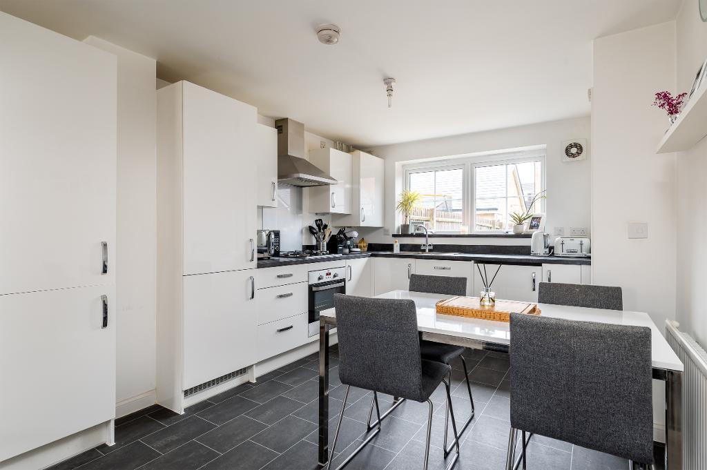 The accommodation comprises an entrance porchway, providing access to an open plan ground floor layout allowing natural light to flow through the property and offering a flexible open living space. The modern kitchen offers white, high gloss cabinetry and contrasting work tops, with fully integrated appliances. To the rear of the property there is a useful boot room space, offering access into the cloakroom and also into the garden.