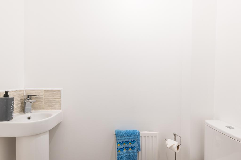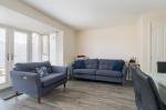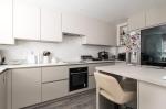 Upon entering, a welcoming entrance hall with cloakroom provides access to all ground floor accommodation. To the front of the property is a stunning contemporary German kitchen, newly refitted in late 2025. Designed with a sleek, seamless handleless finish and contrasting white worktops, this high-specification kitchen features integrated oven, hob and dishwasher, along with a stylish peninsula breakfast bar; perfect for casual dining or morning coffee.