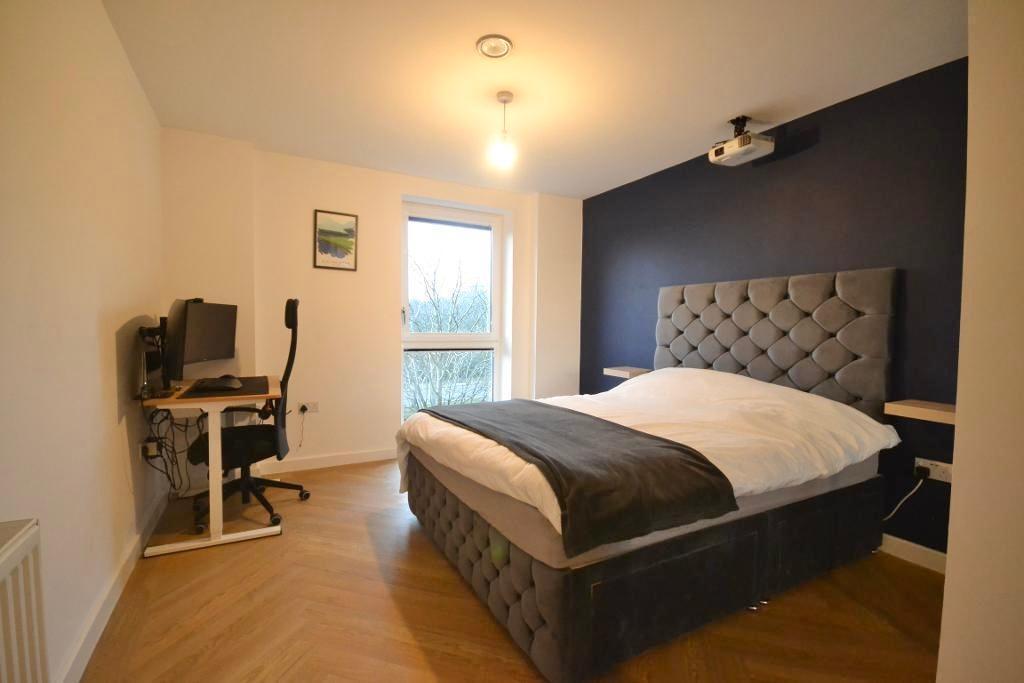 The apartment boasts a well-proportioned double bedroom complete with integrated mirrored wardrobes, a contemporary family bathroom with a shower over the bath, and ample built-in storage throughout.