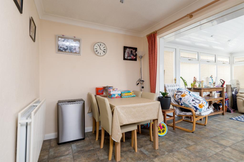 From the living room, you are led into a separate dining room, an ideal setting for family gatherings and entertaining, with sliding doors opening directly onto the rear garden.