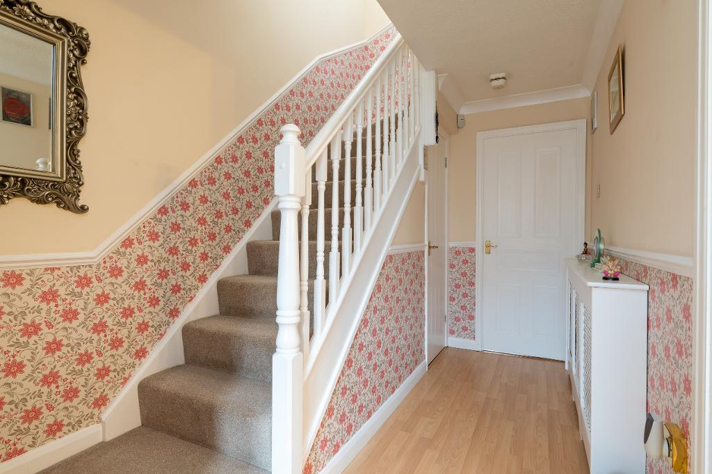 The property welcomes you into a generous entrance hall, complete with a convenient cloakroom and useful understairs storage. Doors lead to all principal ground floor rooms, including the bright and spacious living room featuring a charming bay window and attractive fireplace.