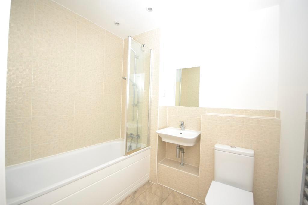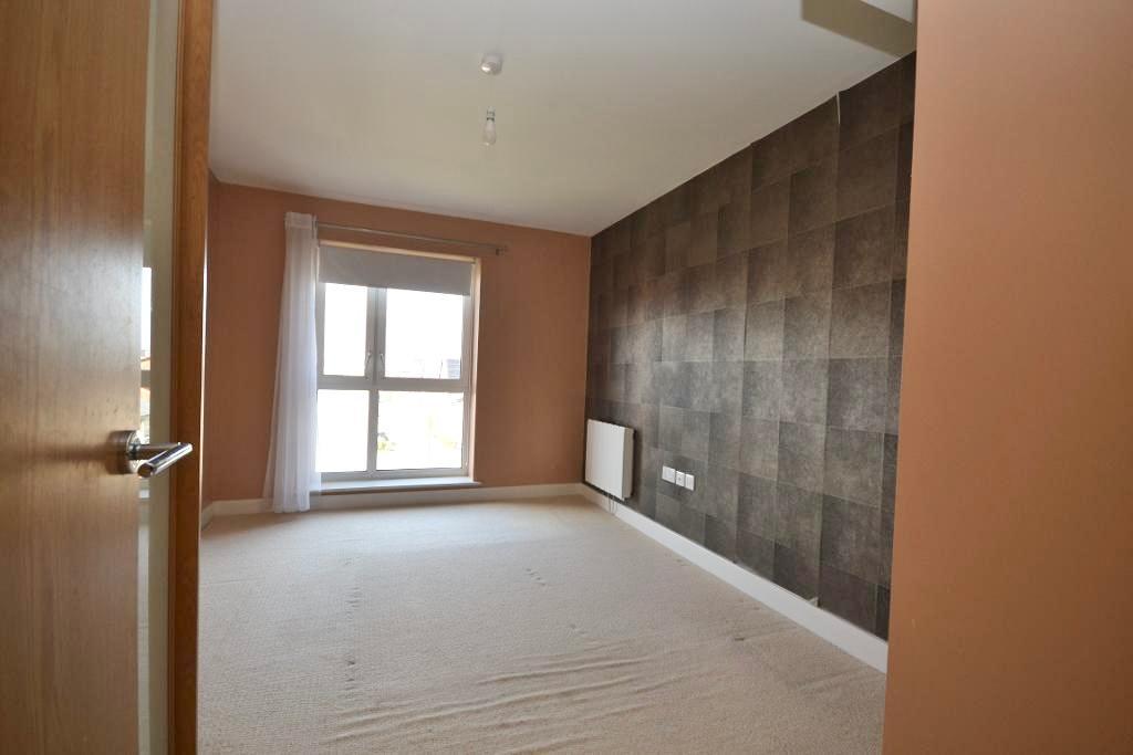 The apartment further comprises a well-proportioned double bedroom featuring integrated wardrobes and impressive floor-to-ceiling windows, allowing for plenty of natural light. A modern bathroom completes the accommodation, fitted with a shower over bath.