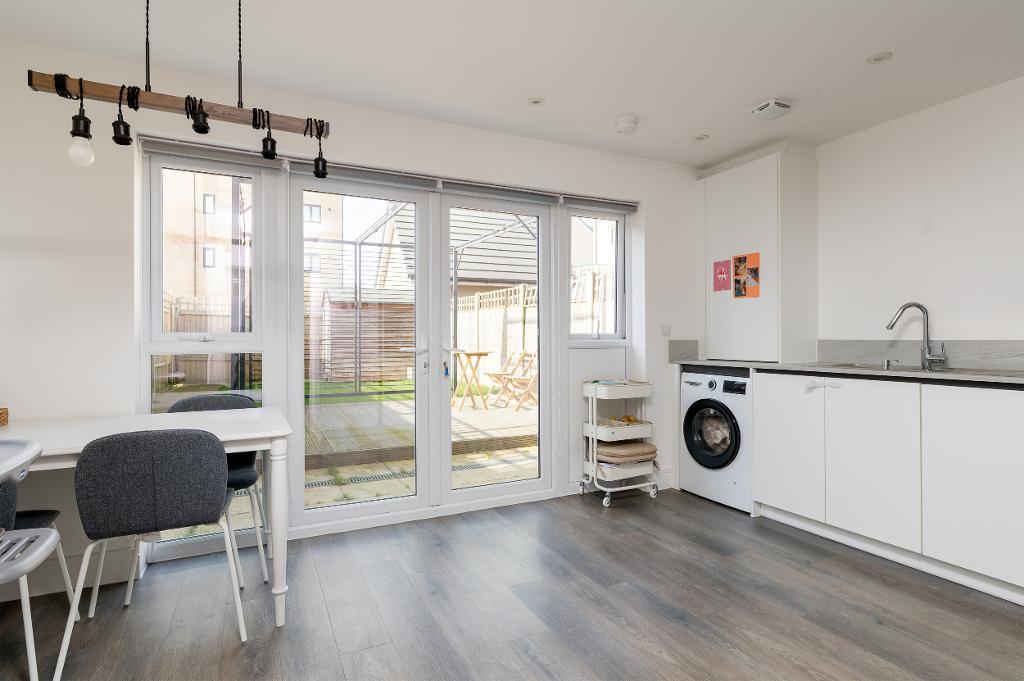 The accommodation comprises of an entrance hall leading through to the bright and spacious living room with bay window to the front. The open kitchen/dining room with patio doors leading on to the garden, boasts a sleek design with modern finishes and includes all integrated appliances. The downstairs cloakroom completes the ground floor.
