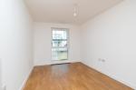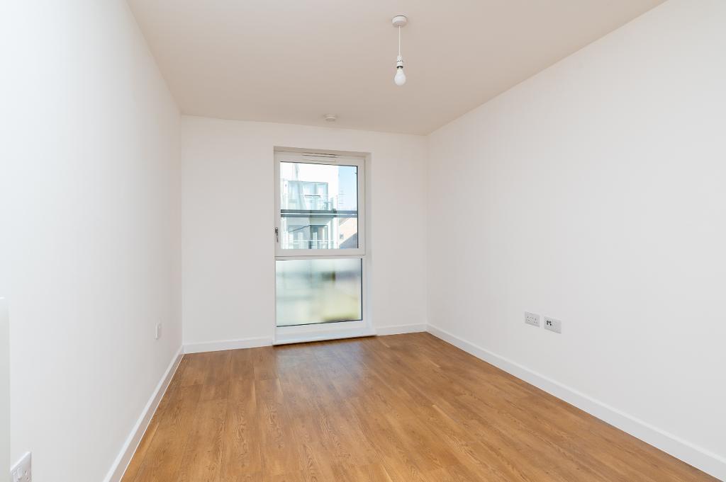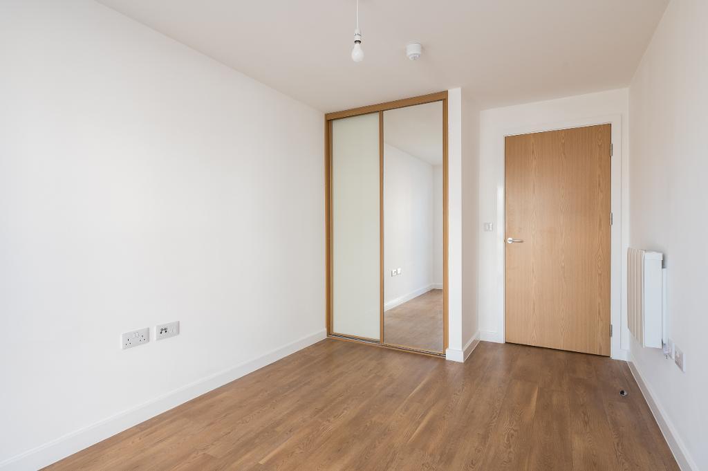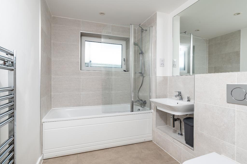 The property also offers a good-sized double bedroom, complete with built-in wardrobes and striking floor-to-ceiling windows that allow an abundance of natural light. A modern bathroom completes the apartment, fitted with a three-piece suite including a shower over the bath.