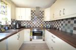 The property welcomes you with an entrance hallway providing access to all ground-floor accommodation. The kitchen is fitted with a range of base and eye-level units in a stylish gloss unit, complemented by wood effect contrasting worktops and a tiled splashback, creating a modern and practical cooking space.