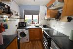 The property opens into an entrance hall leading to a bright, open-plan living space, providing ample room for both relaxing and dining. Patio doors from the living area open directly onto the garden, creating a seamless indoor-outdoor flow. Just off this space is a wood effect, shaker-style kitchen with contrasting worktops, offering a range of fitted units and space for white goods.